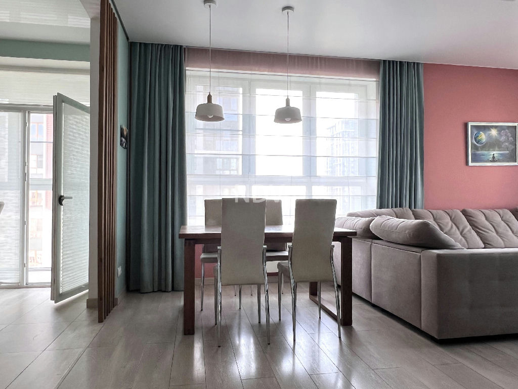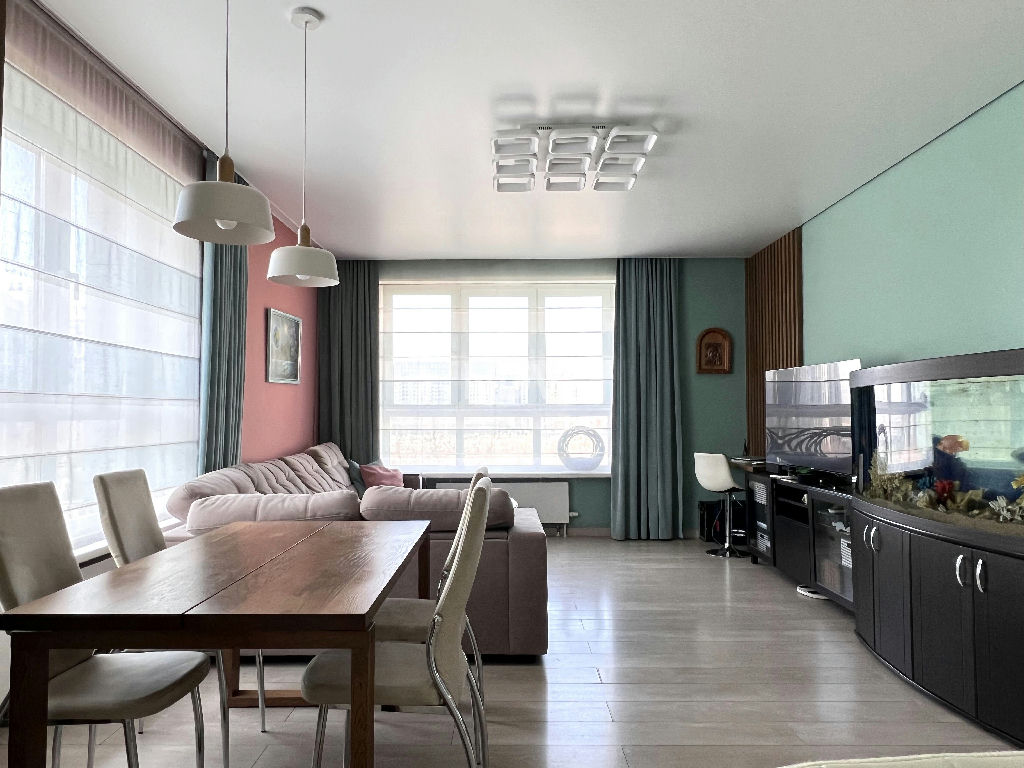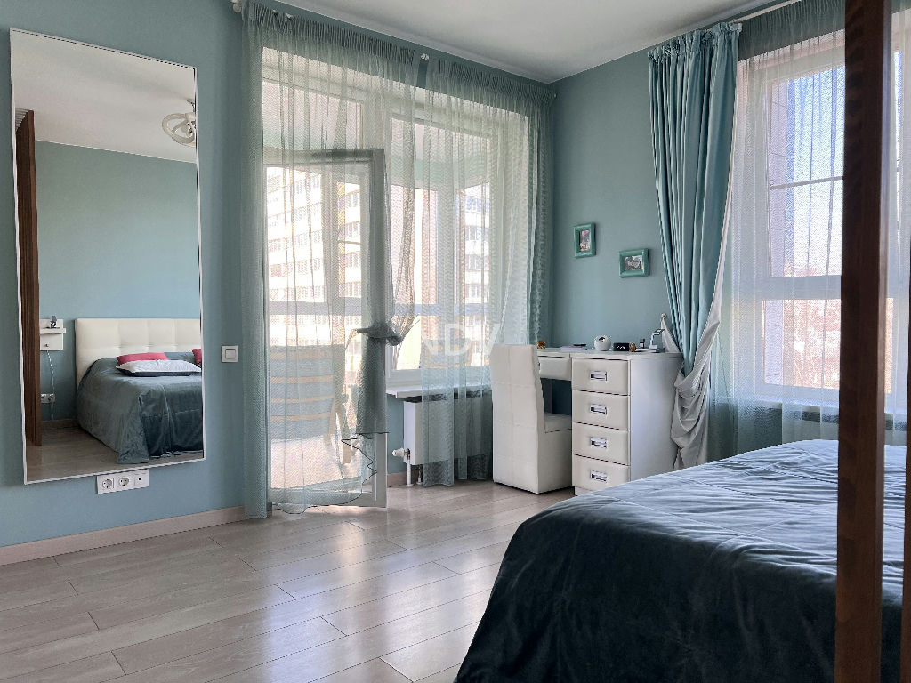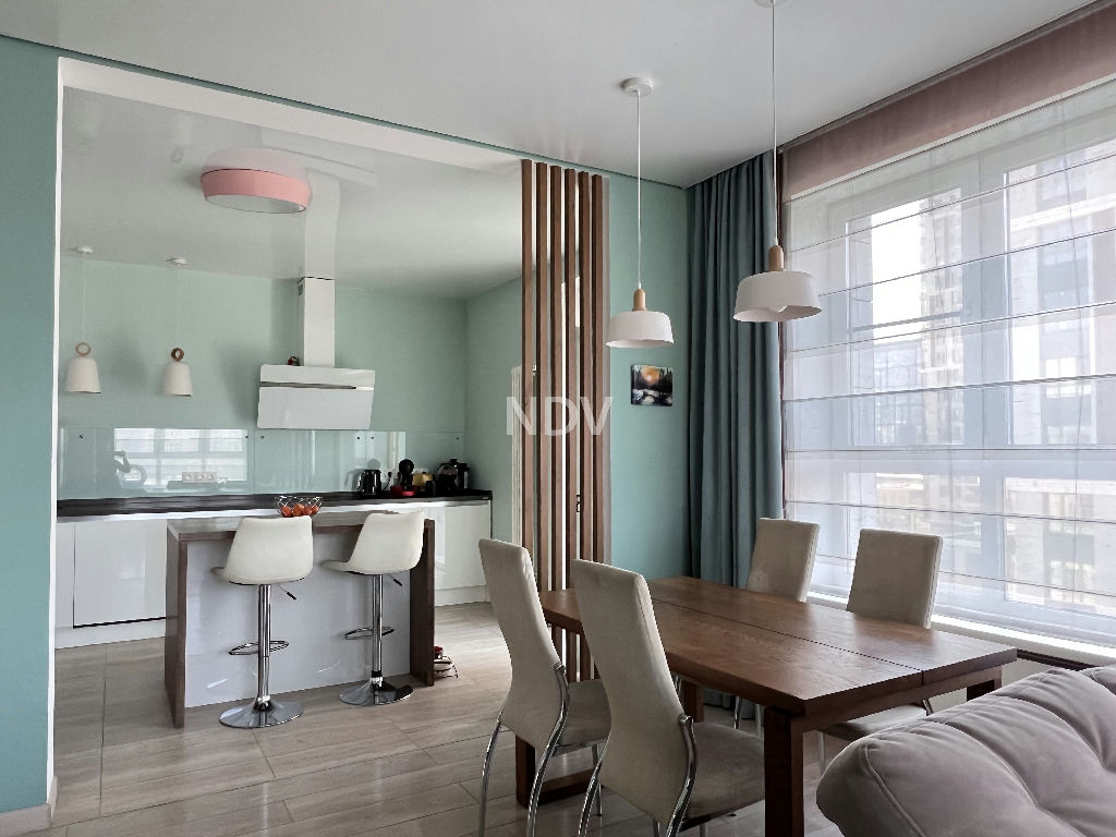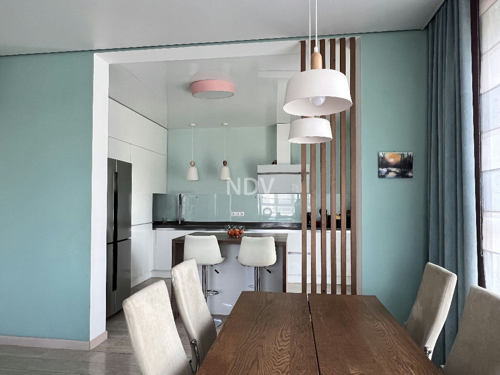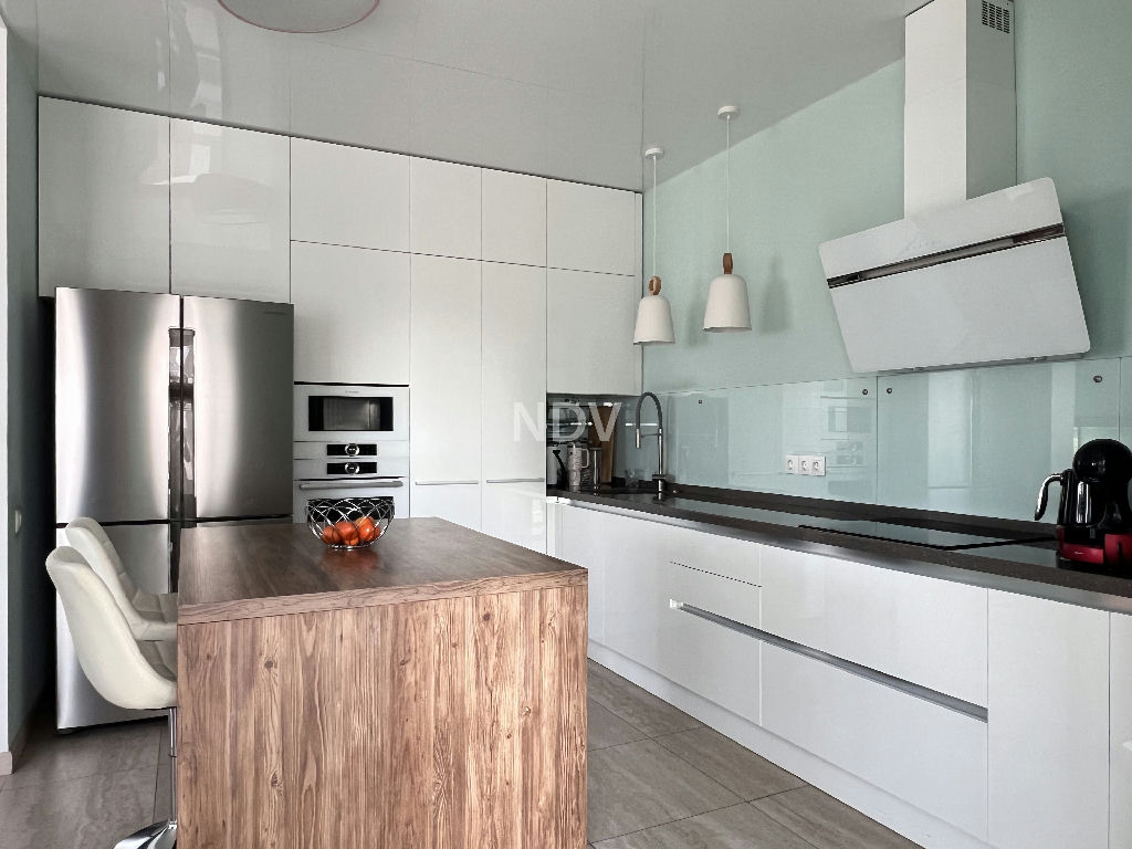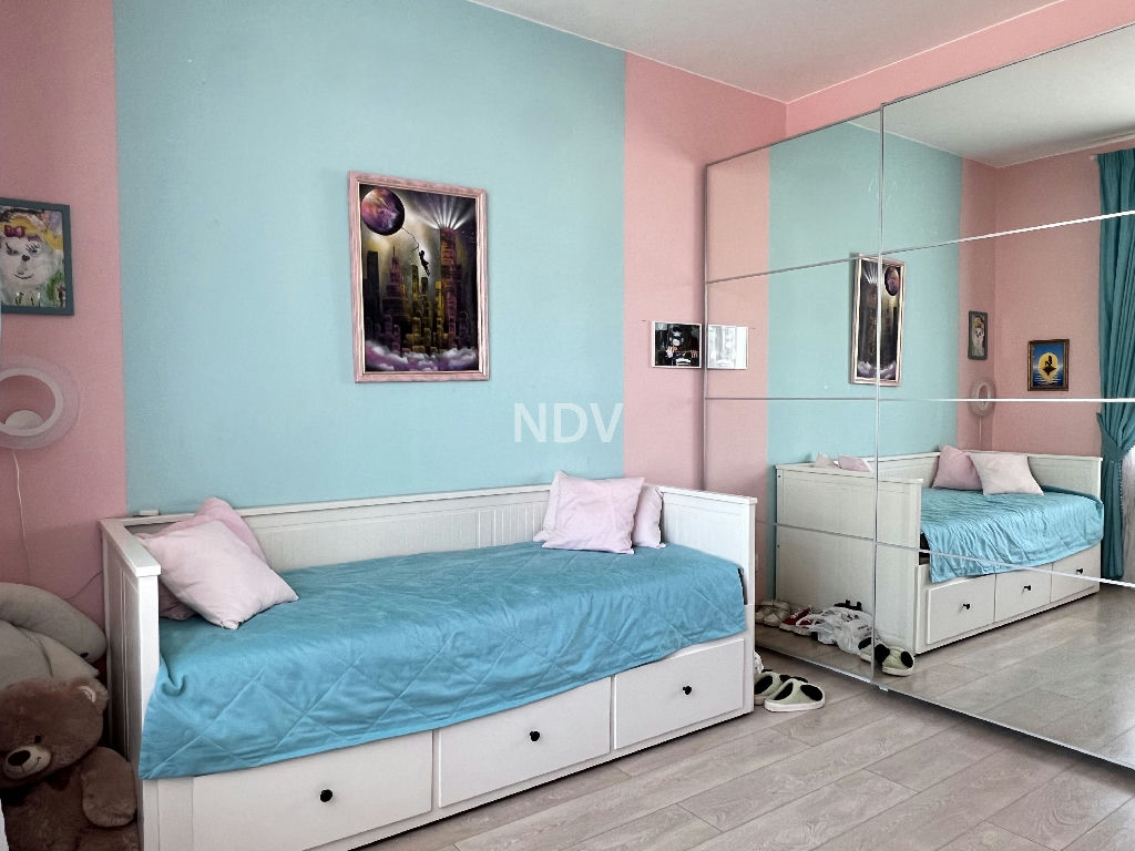 Квартира в отличном состоянии, с тремя изолированными комнатами 16-13-16 кв.м, включая мастерспальню, просторной гостиной с кухонной зоной 38 кв.м, двумя полноценными санузлами и гардеробными комнатами. Просторная застекленная терраса и лоджия.